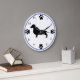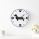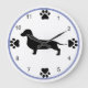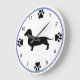 A dog lover clock featuring the silhouette of a dachshund, with paw prints marking the quarter hour numbers.