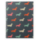 Dachshund Lover's Notebook. Colourful silhouettes pattern with long haired, wirehaired and smooth coated wiener dogs. Visit Jenn’s Doodle World for even more products with this fun Doxies design, as well as more dog breed themed gifts.