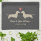 Shorthaired Dachshund Silhouettes Facing Each Other with Heart and Custom Text. Personalize this custom design with names of the bride and groom, wedding date, or your best wishes for the happy couple. Makes a great gift for bridal showers, weddings and milestone anniversaries. A decorative kitchen towel for wiener dog lovers. Visit Jenn’s Doodle World for even more Doxie designs and animal themed wedding favours and gifts.