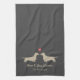 Dachshund Silhouettes with Heart Custom Wedding Kitchen Towel