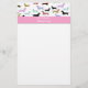 This fun writing stationery features little colourful dachshund dogs at the top. A graphic of a pink ribbon runs across the top waiting for your customized text.