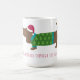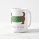 This funny Christmas mug is decorated with an illustrated dachshund in a Santa hat "Dachshund through the snow" in red underneath. You can customize words on the mug if you prefer.