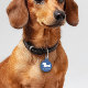 Great for ween pups who like to travel or wander. Full of long dog charm. Personalize the back with your contact info