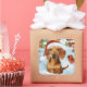 This festive design captures the joyful spirit of the holiday season, featuring an adorable pup wearing a Santa hat. The dog is nestled in a winter wonderland, complete with a snowman, a decorated Christmas tree, and beautifully wrapped presents. Snowflakes gently fall, adding a magical touch to the scene, while the vibrant colours of the holiday decorations create a warm and cheerful atmosphere.