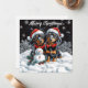 Send joyful holiday greetings with this charming Dachshund Christmas card featuring two adorable Dachshunds dressed in festive Santa hats and red bow ties. The two Dachshunds sit in a snowy winter wonderland, accompanied by a cheerful little snowman, with snowflakes gently falling around them. The Dachshund Christmas card includes the warm message "Merry Christmas," making it the perfect choice for spreading holiday cheer to friends and family. Ideal for dog lovers and Dachshund enthusiasts, this delightful design captures the magic and warmth of the season! generativecontent