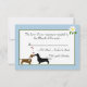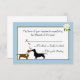 Cute dogs wedding response RSVP card done in white, with adorable silhouette graphics of a brown and a black dachshund kissing, in the bottom left corner. A light blue and green frame surrounds the outer edge, with a single white daisy in the upper right corner. Customize the fun curly text to suit your needs.