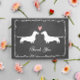 White Dachshund silhouettes with pink heart on chalkboard style background. This cute wiener dog lover's wedding thank you card can be personalized with your own message. A perfect thank you card for newlywed Doxie lovers to mail to all your guests. Visit Jenn's Doodle World for even more Dachshund themed wedding planning products.