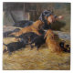 Dachshunds with Puppy in the Stable Hermine Bieder Tile