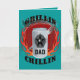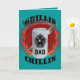 Barbecue or BBQ or Que card features the words Grillin and Chillin. Graphic design includes barbecue flames and smoke and a barbecue utensil. Also featured is a beverage can that can represent your favourite beer, energy drink, soda, pop, cola or other favourite drink. Great for cooks or chefs that enjoy smoking or barbecuing, the King of the grill, Father's Day, Grandparent, birthday, groom, groomsmen, picnic, pool party or just for fun.