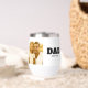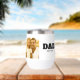 This wine tumbler features a customizable photo of you and your child. Also features black slab serif lettering that says 'Dad', which you can swap out for a different (short) term or name, followed by the established line, where you can add the year you became a father. All colors and elements can be edited in the Zazzle design tool. ••• For more Father's Day gifts, visit my store Zazzle.com/Yeah_The_Boys ••• For custom orders, message me on Zazzle