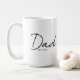 Celebrate the year he officially became a Dad with this stylish and useful black and white coffee mug. Featuring a modern, clean design, the customizable word "Dad" is boldly displayed with "Est." in modern script followed by the customizable year. It's the perfect gift for Father's Day, a new dad, a pregnancy announcement, or any day he wants to show off his favorite title. Created by Simply Farmhouse Press.