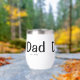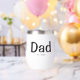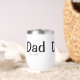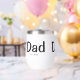 Celebrate fatherhood in style with this modern Dad Established thermal wine tumbler, featuring black typography and the year he became a dad. Fully customizable, add a year for each child. This makes a thoughtful gift for new dads or a sentimental keepsake for yourself.