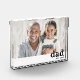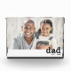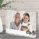 Simple Dad Personalized Acrylic Photo Block. Celebrate fatherhood with this minimalist design featuring the word “dad” in a simple lowercase serif font for a clean, classic look. A white band runs along the bottom where the text overlaps the photo for a modern touch.