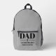 Dad Established Year Names Bold Font Printed Backpack. Customize with the year of becoming a dad, add more years for more children. Change the number for the number of children. Add the names of the children. Modern fun saying in a trendy script design that dad will love to use! Contact the designer for any customization questions.