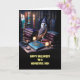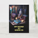 A happy Halloween card for your dad! A cute image of a white faced owl and a witch hat in an old fashion magical library.