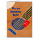 A birthday card for a dad who loves the guitar. A close-up of a guitar with a plectrum tucked into the strings. On the plectrum are the words 'You Rock'. A birthday card for a musician who loves the guitar.