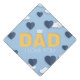 Happy Father's Day cute design, dad i love you yellow text, white clouds and blue hearts in the sky, 3d paper cut cartoon