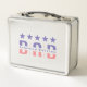 This is a standard metal lunchbox that appears to work just fine. We designed this box ourselves with an uploaded photo and custom text on the front and back. It looks absolutely beautiful except the front of the lunchbox is not centered like it shows in the photo. The print borders don't align with the inset flat part of the box where the preview photo online showed it perfectly centered in there. The back looks nice and centered though.