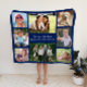 Give the world's best dad a keepsake blanket that he will treasure and enjoy for years. This custom blue blanket features a collage of 8 photos of his children, other family members, pets, etc., "I Love You" or "We Love You," and family names in white typography.