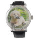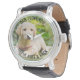 Personalized photo watch - perfect for a golf dad from the dog - but you are welcome to customize the text as you wish. Upload your favourite photo and it will be displayed with a semi-opaque border overlay, as a base for the typography. The wording currently reads "Dad, I love you to the ruff and back" which you can easily edit to suit.