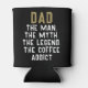 Dad Man Myth Legend Coffee Addict Funny Father's Day Can Cooler. Funny Father's day can cooler with humourous quote ' Dad, the Man, the Myth, the Legend, the Coffee Addict '. The text is in modern bold typography. You can change any text.