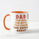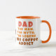 Dad Man Myth Legend Coffee Addict Funny Father's Day Mug. Funny Father's day mug with humourous quote ' Dad, the Man, the Myth, the Legend, the Coffee Addict ' and coffee beans. The text is in modern bold typography in vintage colours. You can change any text on the mug.