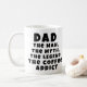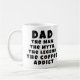 Dad Man Myth Legend Coffee Addict Funny Father's Day Mug. Funny Father's day mug with humourous quote ' Dad, the Man, the Myth, the Legend, the Coffee Addict '. The text is in modern bold black typography. You can change any text on the mug.