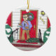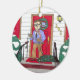 Celebrate the holiday season with this ornament featuring a 1960's style dad putting up the Christmas lights on the front porch.