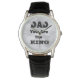 Show your dad how much you appreciate him with this customized watch. This durable crown protector watch features a white grey background with the words "Dad You Are The King" This watch makes a great gift for Father's Day, Birthdays, or any other occasion.