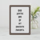 This whimsical creation is the perfect gift for dads who cherish the special bond with their beloved child. With its humourous charm and heartfelt message, this card celebrates the unique connection between a father and their favourite child. Whether you're a new dad or have been a father for years, this card will bring joy and laughter to the occasion. It's an ideal Father's Day gift that will make any dad feel loved and appreciated. The creative design and witty phrases make it suitable for any dad, from experienced fathers to first-time dads. This card is a fantastic choice for celebrating holidays like Father's Day, birthdays, or even just to brighten a dad's day. Share the laughter and show your love with our "Funny Father's Day Card from Favourite Child!"