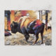 In the Dadaism art style, an image of a plains bison in a woodland area. The colours are due to the fall foilage behind the Bison.
