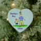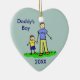 Father and son hold hands. The dad's shirt reads "daddy" and the little boy's shirt reads "me". The family has red hair and light skin. The image comes in multiple ethnic family versions. There is also a no colour drawing version too. Text notes "Daddy's Boy", but can be customized to names. Update the "20XX" to the current year. Add your personalized father and son family photograph to the back of the ornament. Personalize the father and son ornament with family names or a personal message for a special father or daddy ornament pendant gifts! You can make a custom family ornaments for a special Father's Day gift, new daddy and/or new baby, Family Reunion or other customized family art gifts!