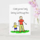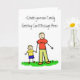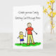 Father and son hold hands. The father's shirt read "daddy" and the little boy's shirt reads "me". The family has blonde hair. The image comes in multiple colour versions. There is also a no colour drawing version too. Customize this note card with your personalized greeting message to make a special custom greeting cards for Father's Day, new fathers, family reunions, or other special family holidays.