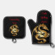 Awesome golden dragon on black background, is featured on this oven mitt and pot holder set. With message, "Dad's Grilling Secret", this would make a great gift for Father's Day, fantasy fans, birthdays and more! And now we know how Dad grills via the dragon! No-slip silicon part for a stable and safe grip, hanging loop too.