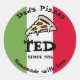 Design in a pizzeria logo style, with the colours of the Italian flag and customizable texts. Perfect to honour your country, grandfather, or whoever else is dear to you!