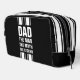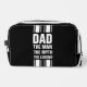 This modern, stylish Dopp kit features a retro white dual racing stripe design on a classic black background, inspired by timeless motorsport and vintage car styling. Clean, simple, and unmistakably sporty, the design evokes classic muscle cars, racing heritage, and retro automotive aesthetics. This toiletry bag showcases the classic quote DAD, THE MAN, THE MYTH, THE LEGEND, making it a fun and stylish accessory for travel, gym use, or everyday organization. Perfect for racing fans, classic car enthusiasts, and anyone who appreciates bold, minimalist design with a motorsport edge. A great gift idea for Father’s Day, birthdays, or car lovers, this racing stripe Dopp kit combines function, durability, and timeless style.