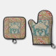 Daffodil chintz art nouveau flower wallpaper oven mitt & pot holder set