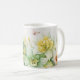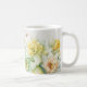 This classic white coffee mug is shown with a lovely daffodil flower print.