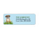 The left side of these return address labels feature an image of an adorable Boxer puppy dog sitting in a garden of yellow spring daffodil flowers and green foliage. At the right is your custom text in green and black. Everything is placed on a light blue background.