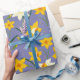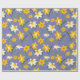 Boho floral wrapping paper with daffodil flower pattern on blue, perfect for Easter and spring time.