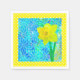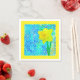 This paper napkin flaunts a digital collage made up of several layers of paintings, textures and scans. The sunny daffodil "pops" off the blue backdrop. Cheerful yellow and white polka dots form a frame as a finishing touch.
