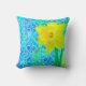 This throw pillow flaunts a digital collage made up of several layers of paintings, textures and scans. The sunny daffodil "pops" off the blue backdrop.