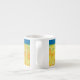 Joli petit Espresso Mug à personnaliser, avec un motif de jonquilles dorées, d'une aquarelle peinte à la main par Judy Adamson. Vous pouvez ajouter vos propres mots dans la bande bleue ou le laisser vide.