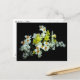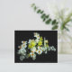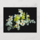 When the daffodils bloom, we know that spring has arrived in all her glory! This postcard is decorated with an exquisite arrangement of late pale yellow, white and orange narcissus and white lilacs, set off by a pure black background.