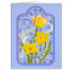 Decorative Happy Easter card; daffodils and tulip on on ornamental background, yellow, green and blue.