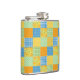 A pretty Vinyl-wrapped Hip Flask, with a faux-patchwork pattern of Daffodil prints, with Polka Dots and Check Ginghams in green, orange, yellow and blue and white. Part of the Posh & Painterly 'Daffy-down-Dillies' collection.
