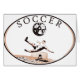 Dahjo presents: Sports Series Featuring: SOCCER A soccer player kicks the soccer ball to score a goal. In the background stands a goalie at his goal post.