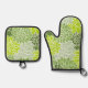Dahlia Flowers, Pattern Of Flowers, Green Dahlia Oven Mitt & Pot Holder Set
