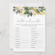 This bridal shower word scramble game features watercolor lemons, white florals, and a fun handwritten font. Pair with additional items from the CLARA Collection for a cohesive look.