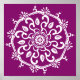 This white mandala sits on a warm purple background. The colour is luxurious and creative. Part of the Payon Mandala Collection.